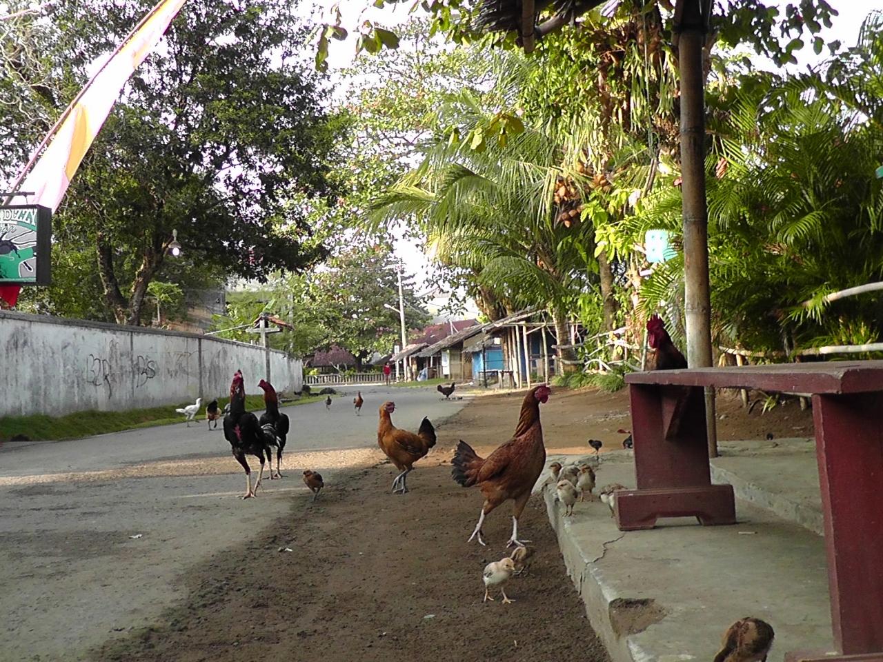 静かな裏通り沿いの宿、路上で鶏も放し飼いですっかり気に入りました。 -
