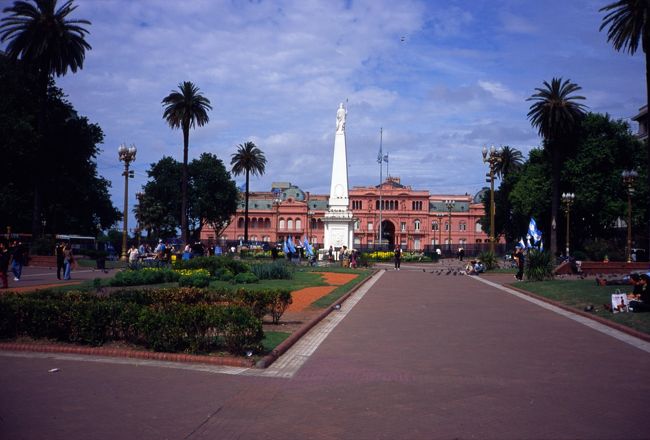 ブエノスアイレスの中心地といえば、5月広場周辺。16世紀に作られた町は、この広場を中心にして、徐々に栄えた。カサ・ロサーダ(大統領府)の正面に位置することもあって、革命、大統領の演説、大規模なデモなど、様々な歴史の舞台として重要な場所。周辺には、カサ・ロサーダの他にも、カテドラル・メトロポリターナという大聖堂やカビルドといわれるう市議会など、ブエノスアイレスの象徴ともいえる建造物が周りを取り囲む。 -