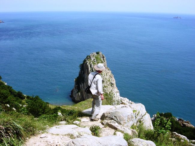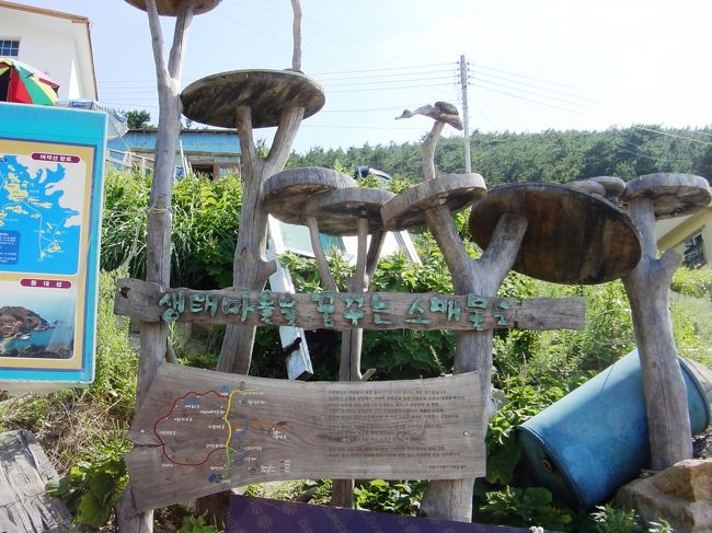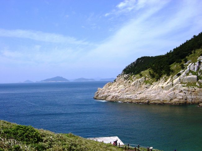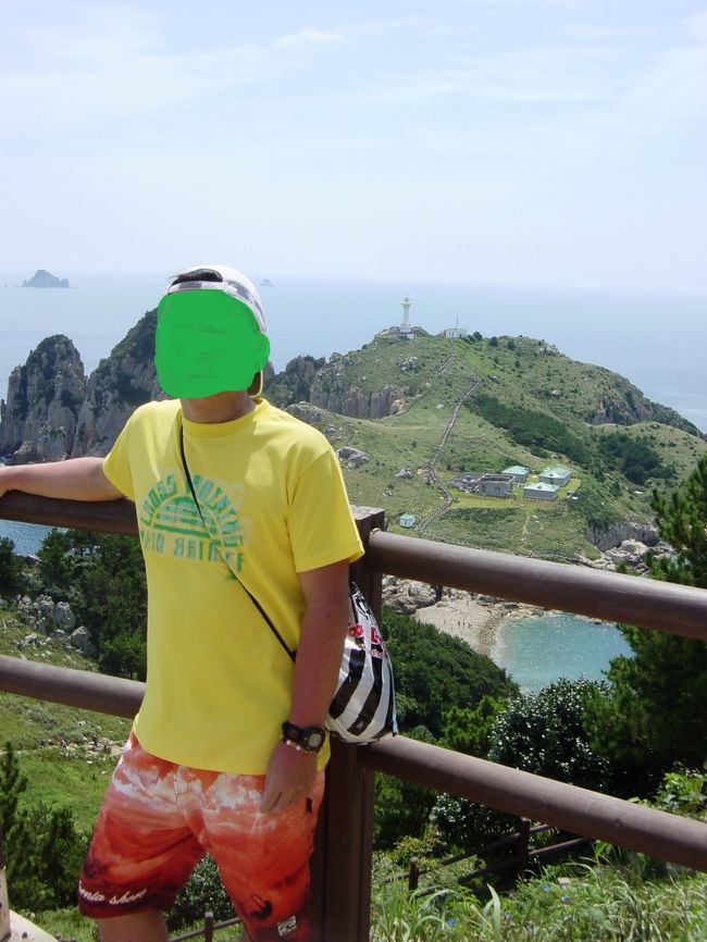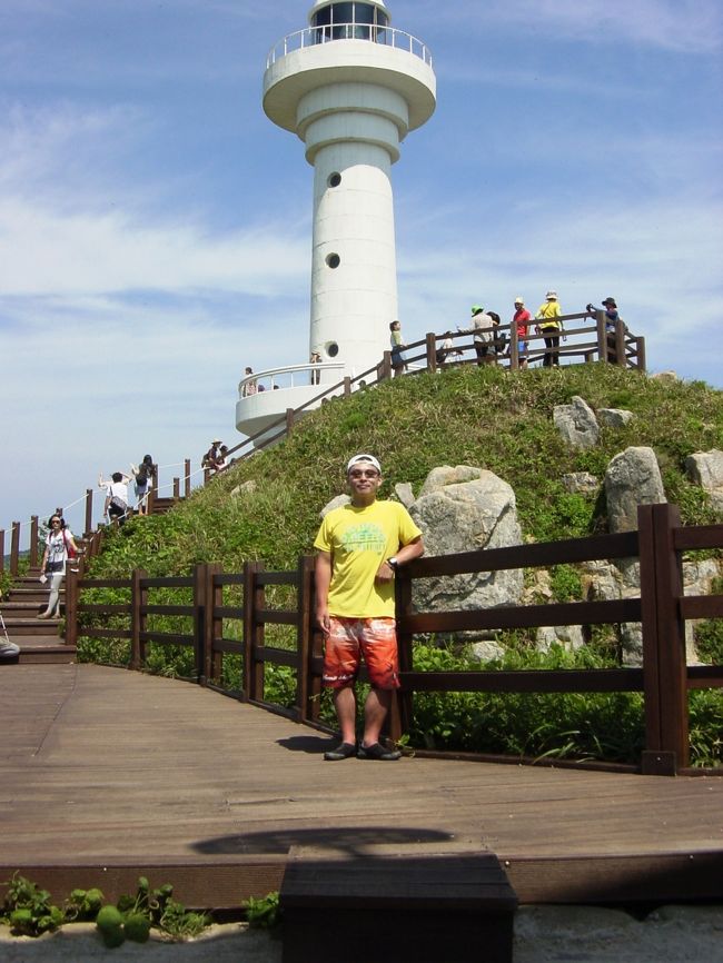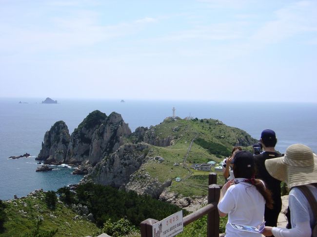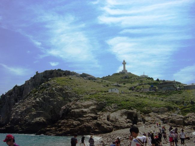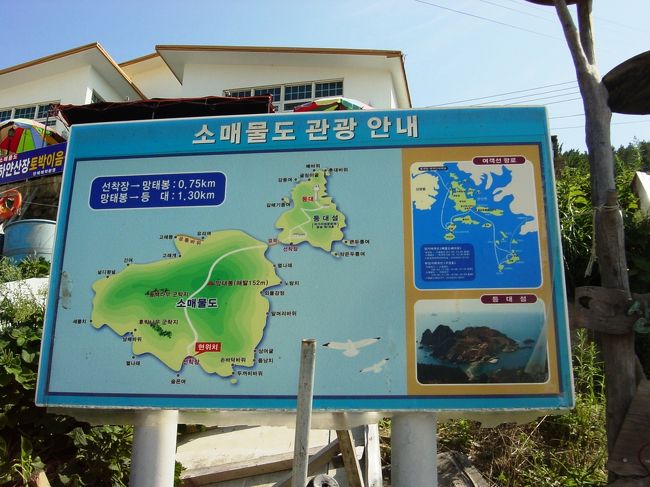 当日は11:20の船でMAEMULDOに渡り40分程で到着。帰りの船は15:00の予定だったので、すぐに灯台へ向けて歩きました。行程はアップダウンが多く、女性の人はサンダル等は厳禁です。しっかりした靴(スニーカー等踵の有る靴)を履いて、水を必ず持って行って下さい。片道40分(男性の足で)到着し、写真を撮り14:50頃港に到着したら、船は16:00だと、港近くで貝を売っているおばちゃんが、教えてくれたので、おじさん2名と一緒に貝とホヤの刺身を肴にビールを飲んでいると、統営直行の船に100名程が乗りこんでいました。最近、このMAEMULDOがTVで放送されて、韓国人に大変人気があると教えてくれました。夏季のシーズンは余裕を持って来るか、前後に訪問時期をずらすのが良いと思います。島には民宿やペンションがありますので、宿泊も可能ですが、TELかインターネットで直接予約するので、日本人には難しいかもしれません。
