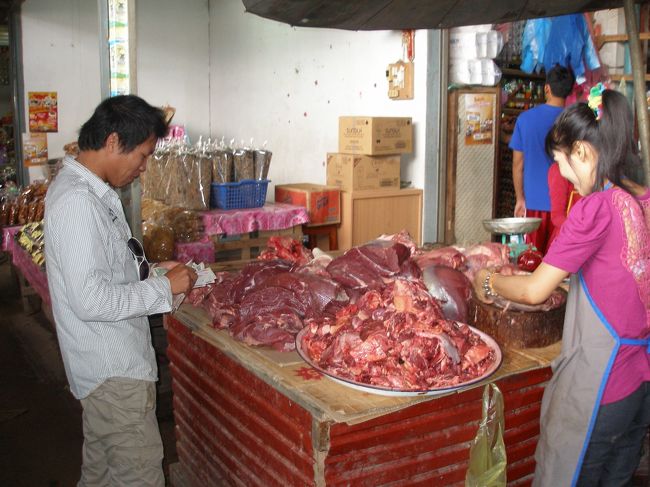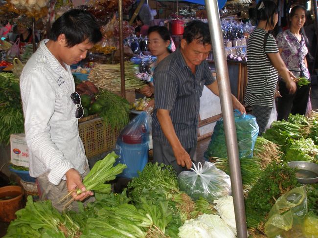 まずは村での食事の材料をルアンパパンの市場で買ってそれを持って行くとのこと。タラート ポーシーと言うマーケットに行って買い物。ラオスの人の買い物につきあうというのもこれまで経験なし。ちょっとワクワクする。 -