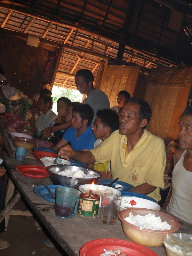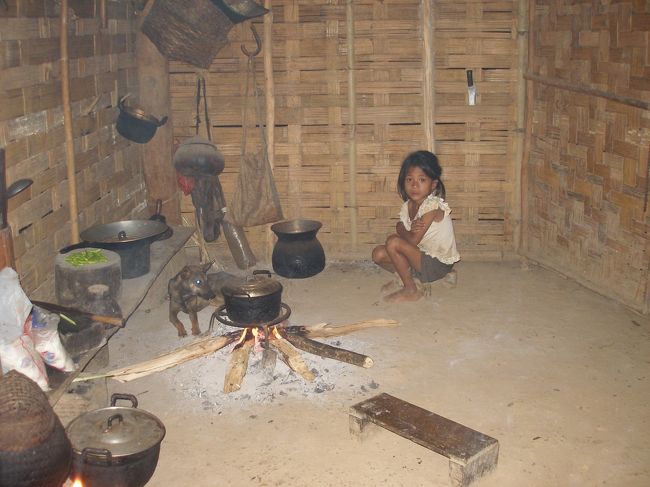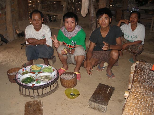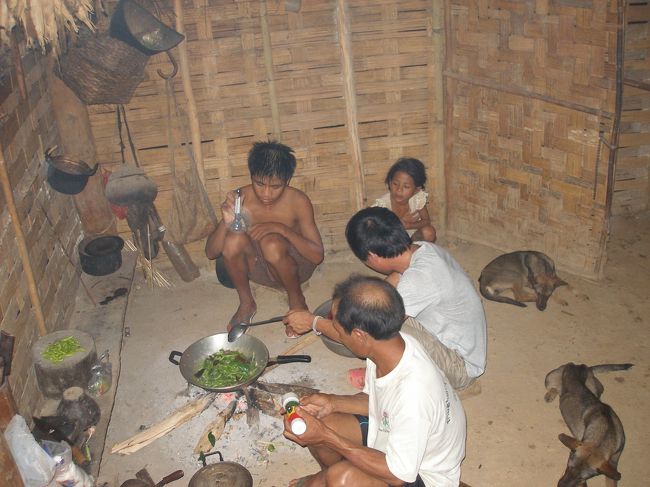 いつもホームステェイするモン族の家では慣れているので料理もまかせているが,今日のカム族の家は始めてなので,ガイドさん自ら料理を開始。ガイドさんの指導の元お兄さんお父さんが料理。詳しく聞かなかったが少数民族の料理ではなくラオ族の料理か??ルアンパパアンに帰った時ハッピースマイル社の伊○さんが今度、ラオス料理の店のシェフ達を連れて村に行き,村の人たちにラオ料理を味わってもらうイベントを今計画しているといっていたが、小数民族の食事がどれでラオの料理がどれと言うのはわからずじまいで帰国して来た。