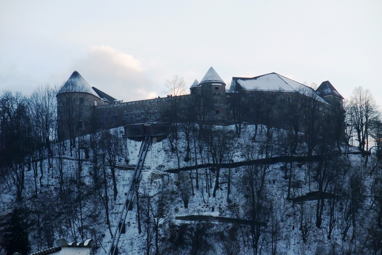 リュブリャーナに戻ってきて夕方だがまだ日があるのと青空がまだ見えるので再び旧市街に向かった。写真はリュブリャナ城。