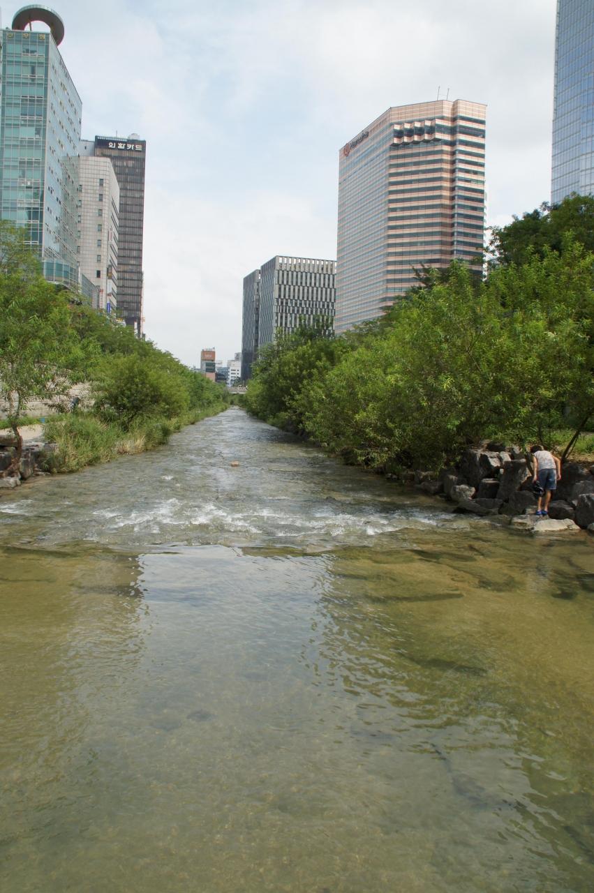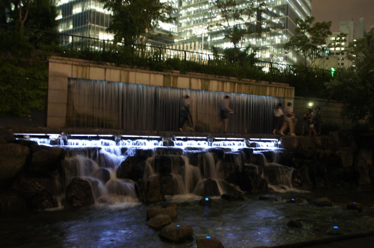 その後、さらに前回の宿題。緑豊かな清渓川を散歩してみます。夜もね。