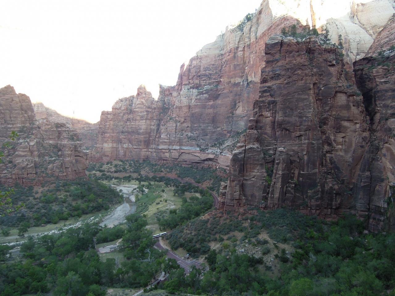 オブザーベーションポイントとどちらにしようか悩んだエンジェルスランディングが遙か眼下に見えます。