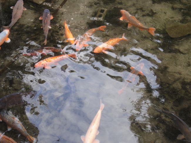 これが金鱗湖。温泉が流れ込んでいるので、池の水はあたたく、冬はもわーっと白い湯気が立ち込めたりするそうです。