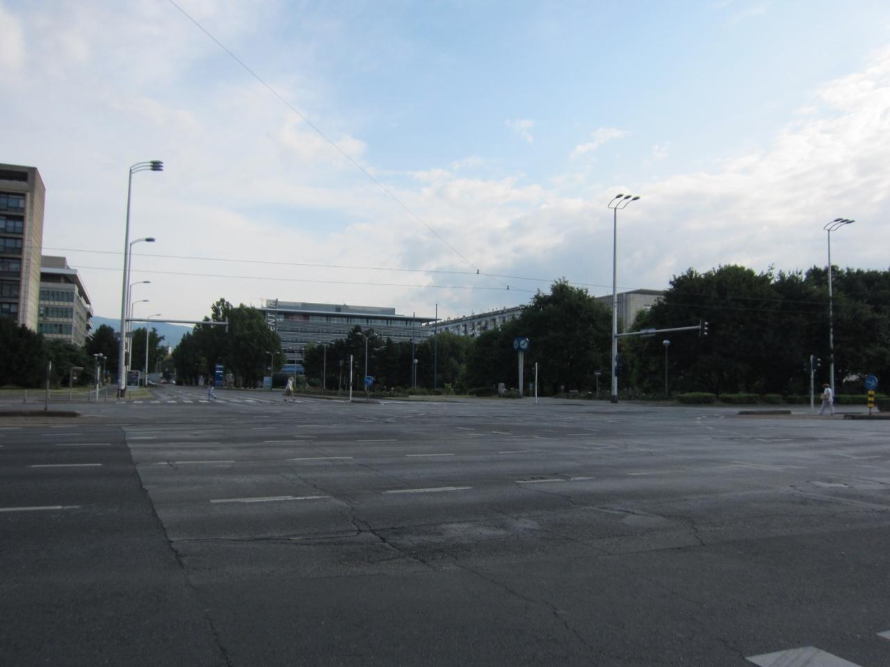 ホテルの前のぼんやりした大通り。駅にたどり着くまで、信号を待つ時間のほうが長かったかもしれません。