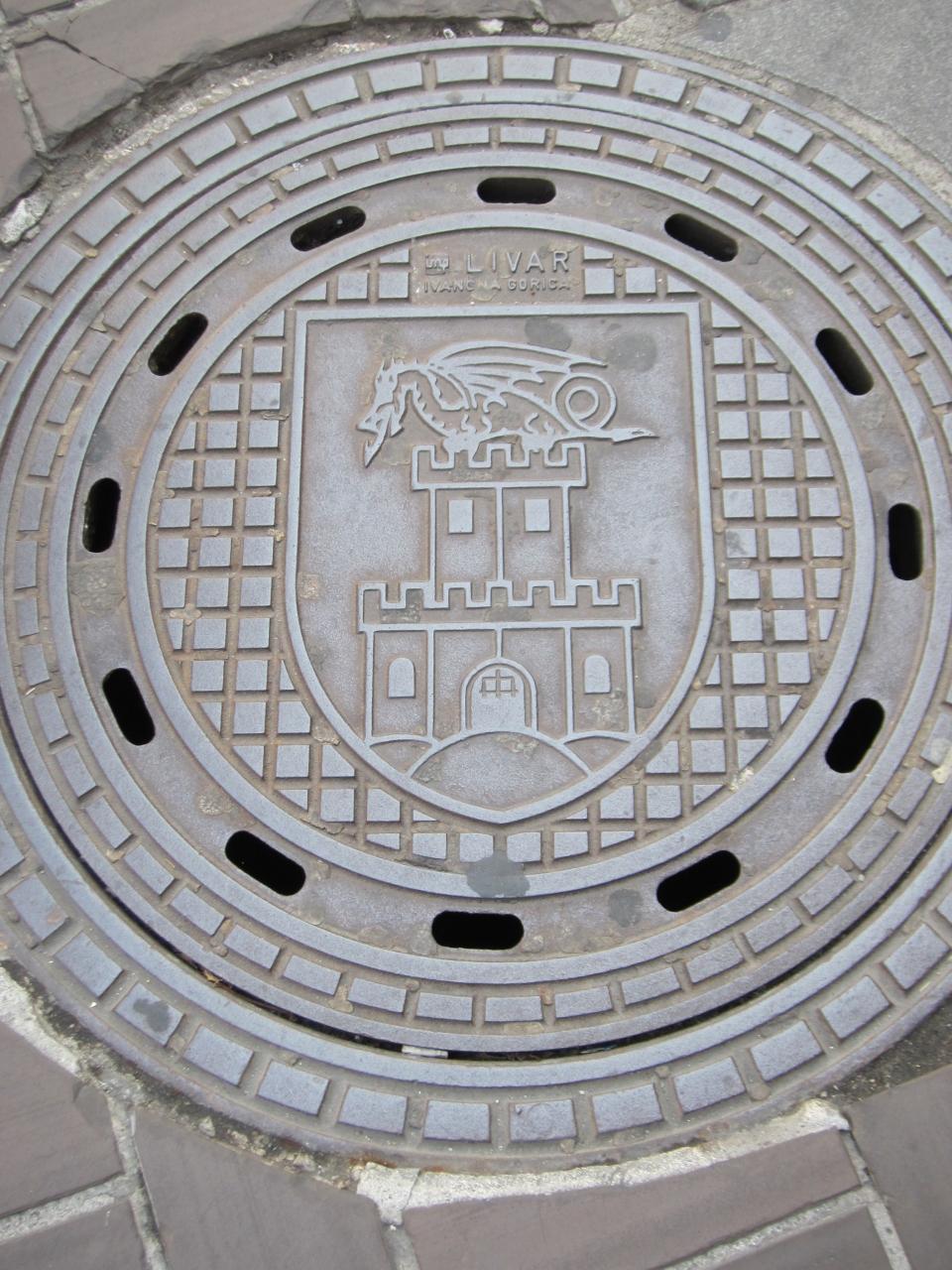リュブリャーナのマンホールはお城とドラゴンの絵柄。