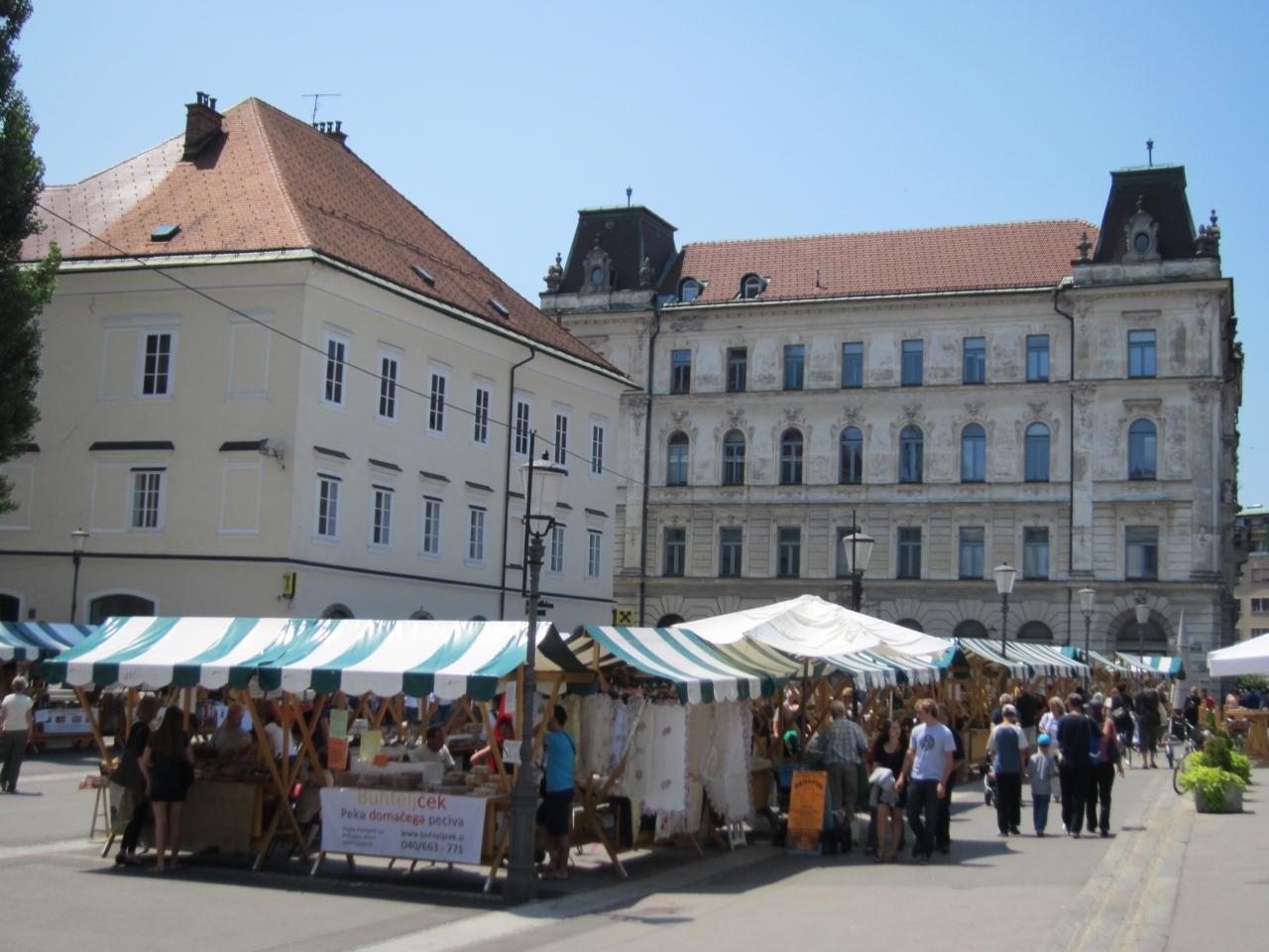 前日にとっておいたチケットを持ってそわそわ乗り込んだリュブリャーナ行きの列車。国境通過は思っていたより怖い感じでしたが、快適に移動できました。あっという間に到着したリュブリャーナは下調べしておいたとおりコンパクトな街でしたが、とてもかわいらしい町並みで、天気にも恵まれ、ここを起点にスロヴェニアを堪能できました。