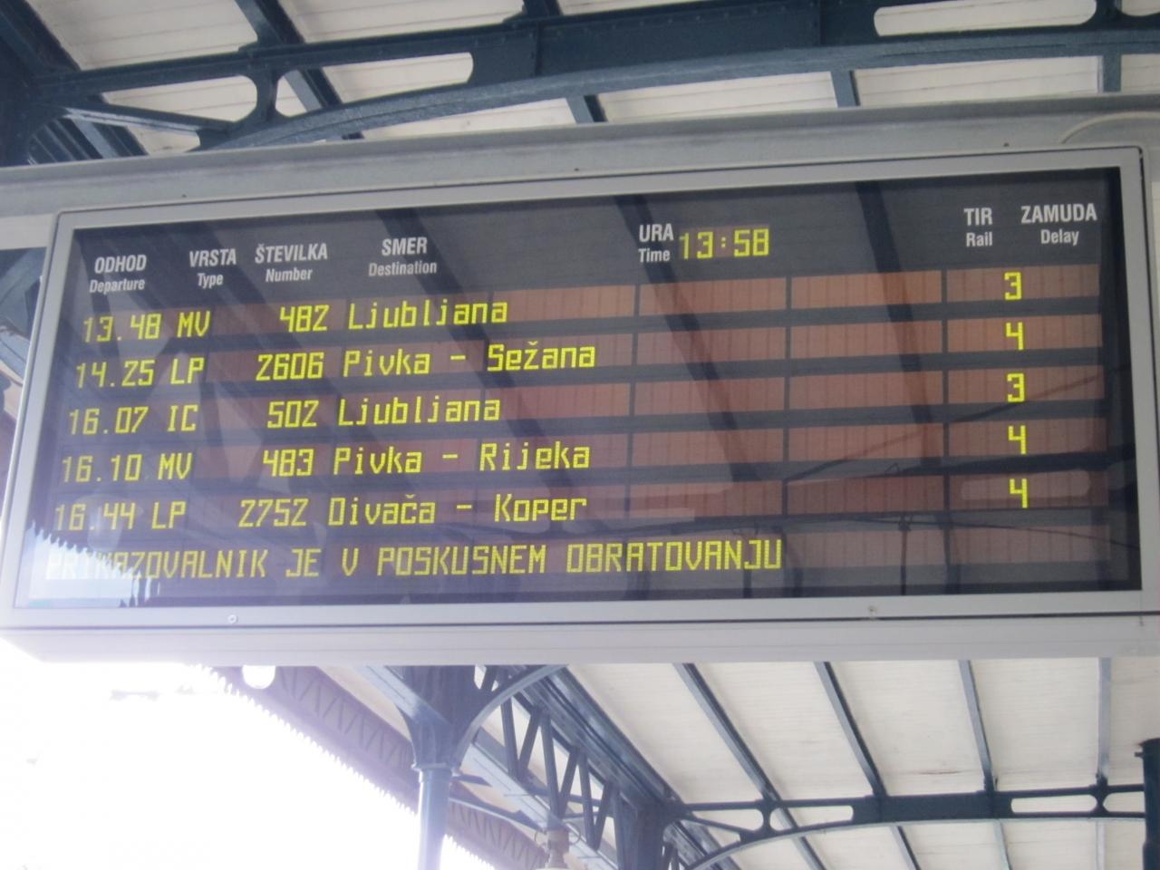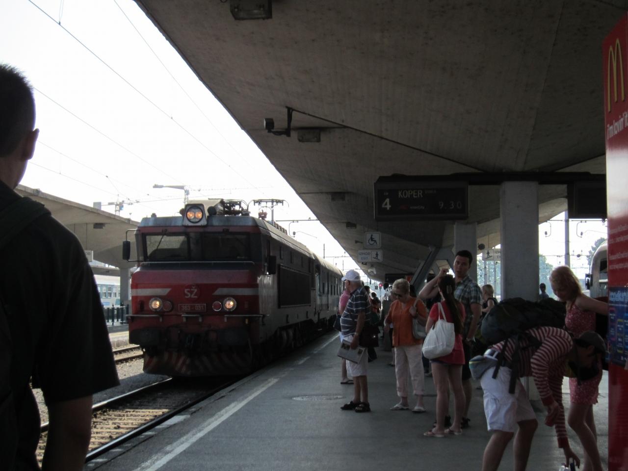 リュブリャーナ駅でポストイナとの往復チケットを購入。列車に乗り込みます。