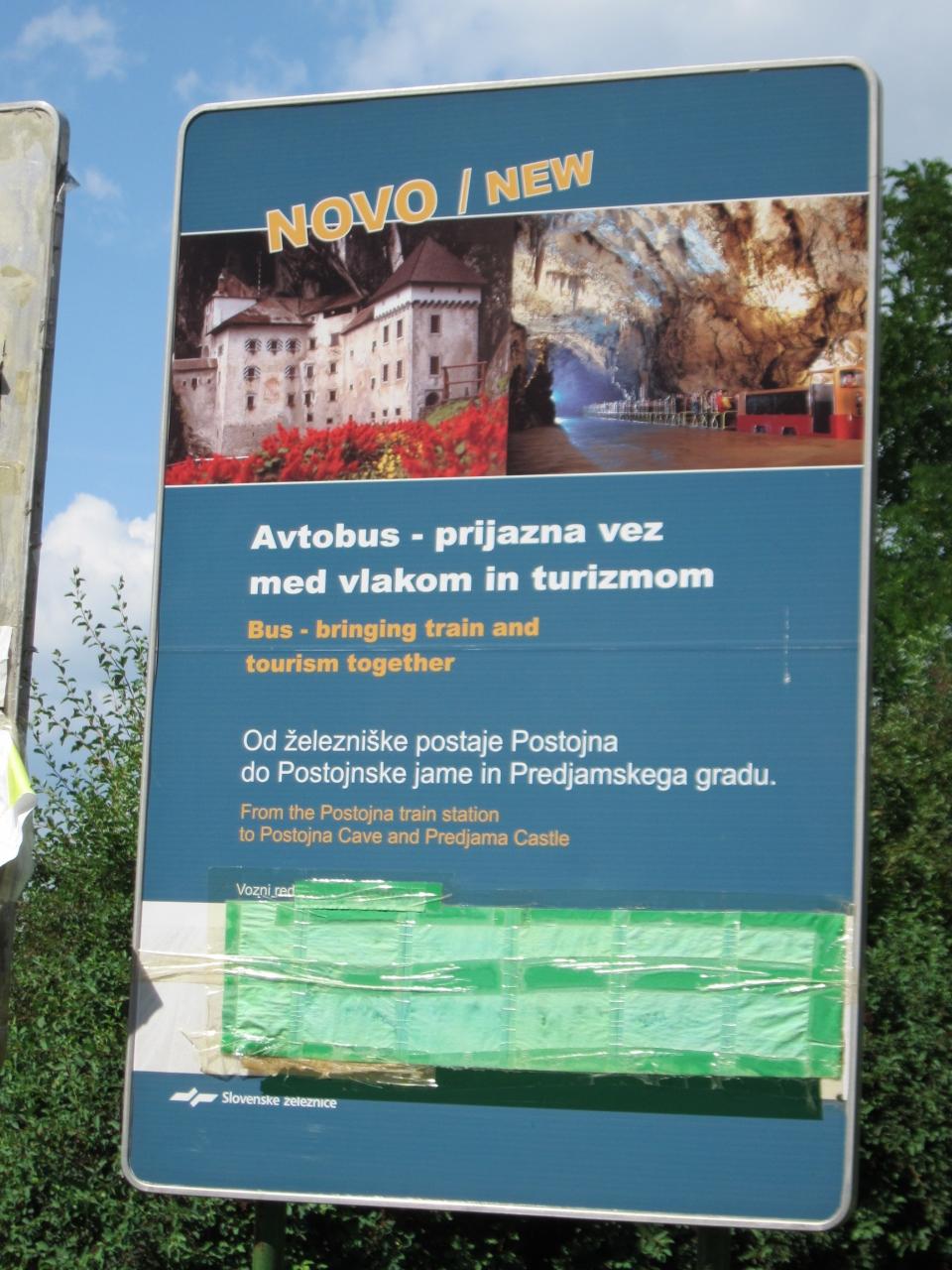 駅前からポストイナ鍾乳洞までのバスの時刻表はテープで覆われたままでした。観光客が多い夏期でこうなので、きっともう運行していないのでしょう…。