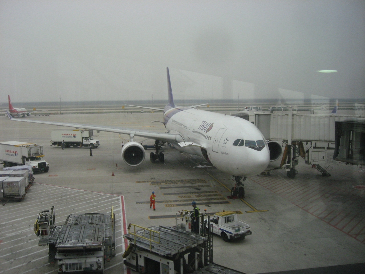無事、上海に到着しました。搭乗前には一昔前のシートかなぁと思っていたのですが、座り心地はかなり良かったです。また、サービスもフレンドリーでとても気に入りました。ちょうど円高でソウル発券のタイ航空ビジネスが安いので、次回は有償でもチャンレンジしてみようかと思いました。