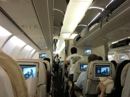 エティハド航空の機内の様子。正直狭いです。