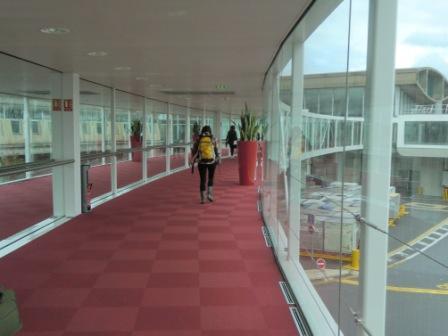 この写真は、アブダビ空港の第2ターミナルです。とても小さなターミナルです。全面タイル張りでちょっぴり爬虫類っぽいデザインです。