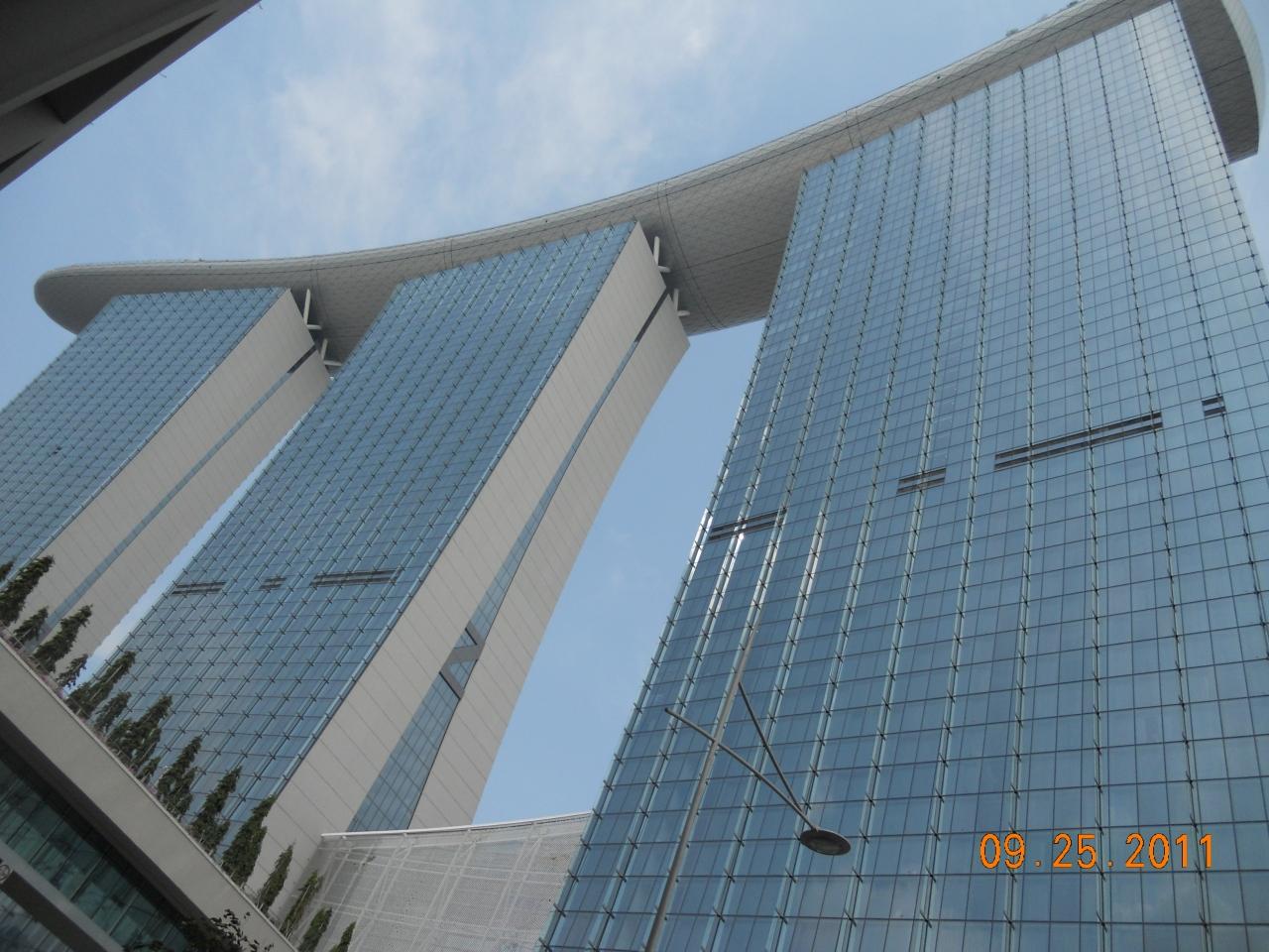 今日は行く場所行く場所が通行止めだったり、営業停止だったりして足止めばかりくらってましたが、そんなことではめげませんよ! やっと念願のマリーナ・ベイ・サンズの近くまでやってきました。 こんな遠くから見ても、既に何か物凄い建物だな!って感じます。