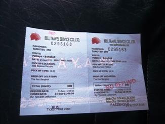 パタヤーのホテルまで迎えに来てくれてバンコクのホテルまで 350B