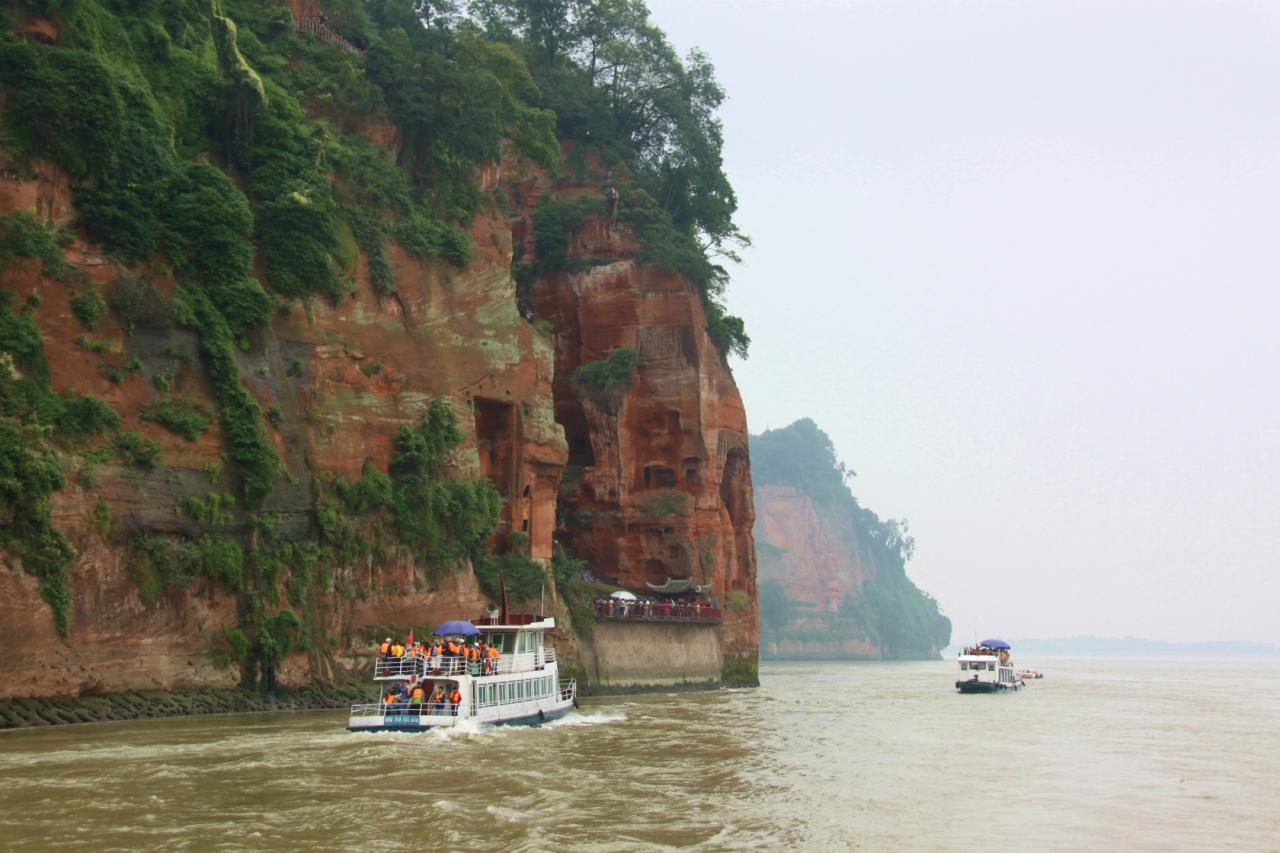 大仏は着工から90年の歳月をかけ803年に完成した。1,200年経った今でも岷江の河岸に静かに鎮座している。