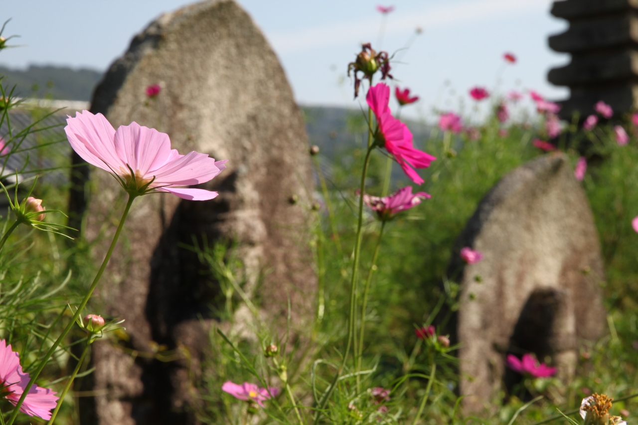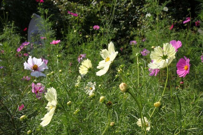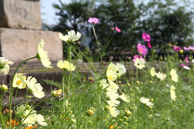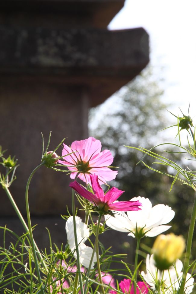 塔のまわりにはコスモスが。