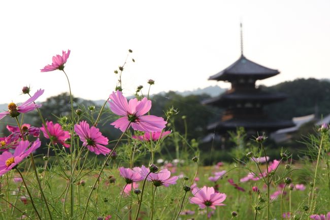 コスモス寺として有名な「般若寺」に向かったところ5分咲きとのことで、少しさみしい感じだったので、少し足を延ばして、「法起寺」に向かいました。