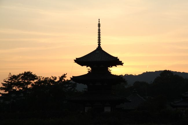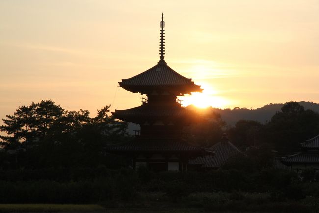 三重塔の向こう側に沈む夕陽が綺麗ですね。