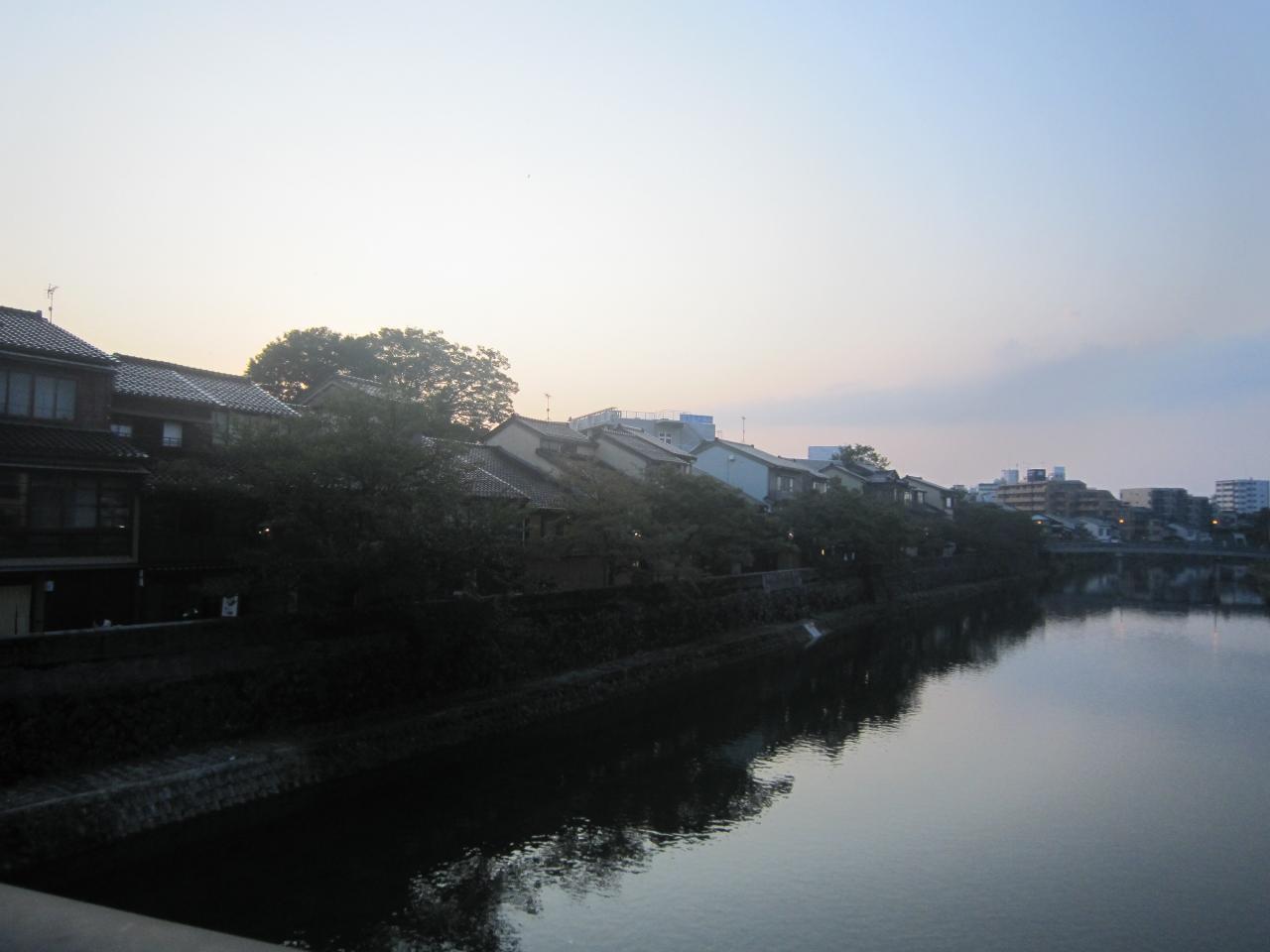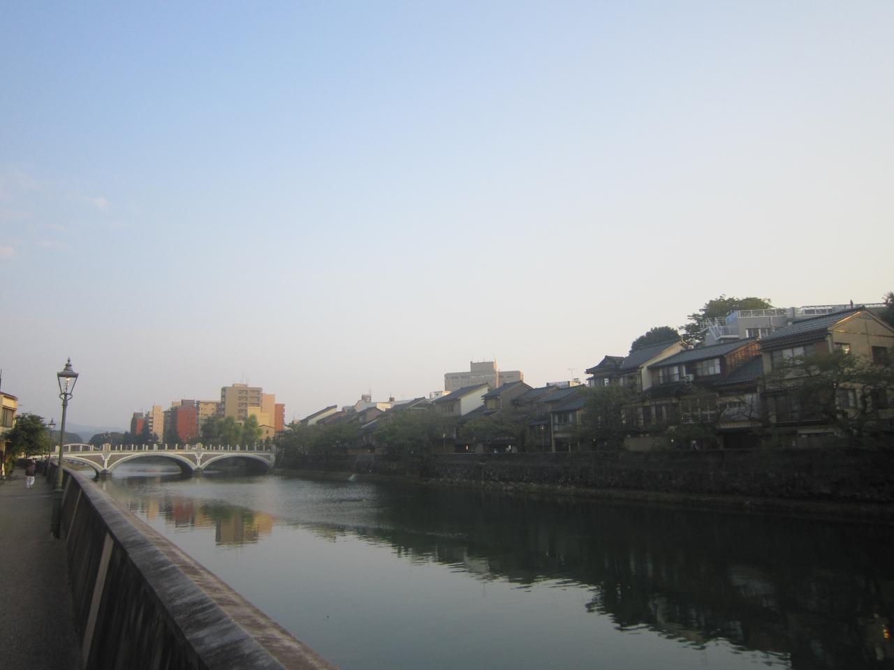 右に見えるのが主計町です。前に見える橋は浅野川大橋です。 -