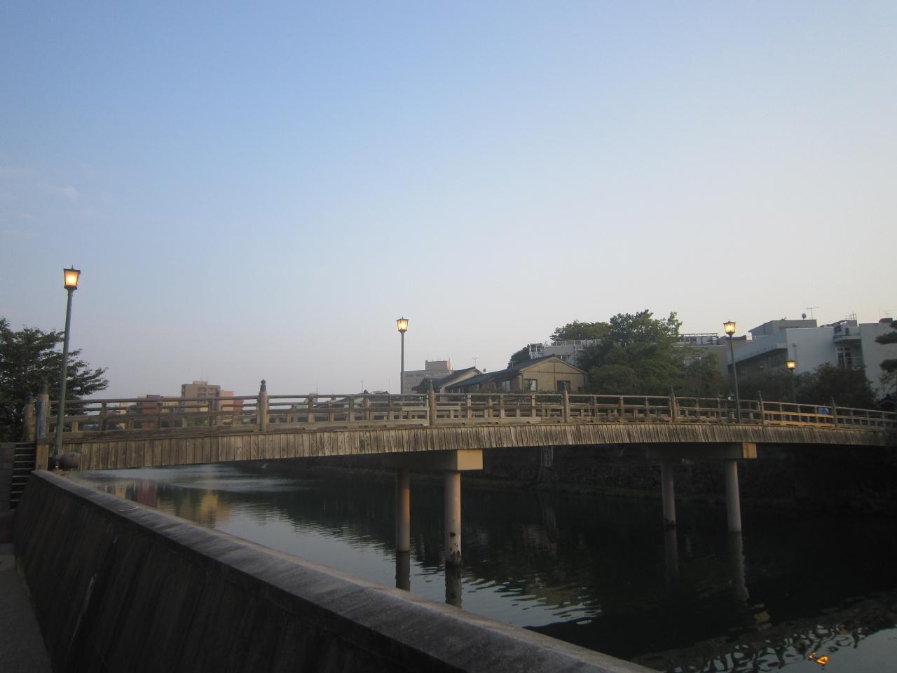 浅野川にかかる風情のある木の橋。 -
