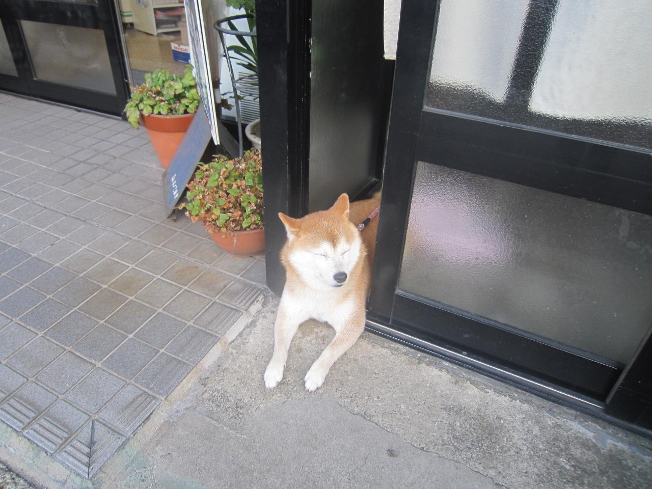 途中、犬が玄関から半分だけでて通りを見ていました。