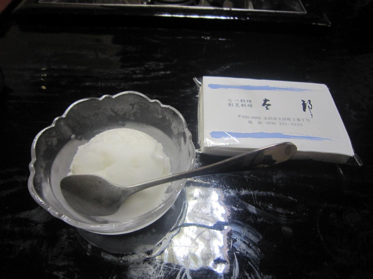デザートのシャーベット。ティッシュを貰いました。
