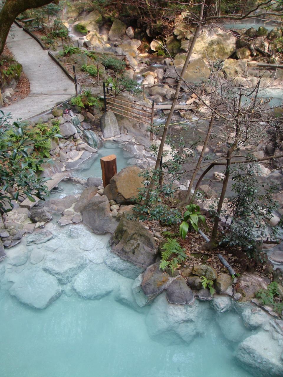 バルコニーからはもうもうとあがる湯煙が見えます。