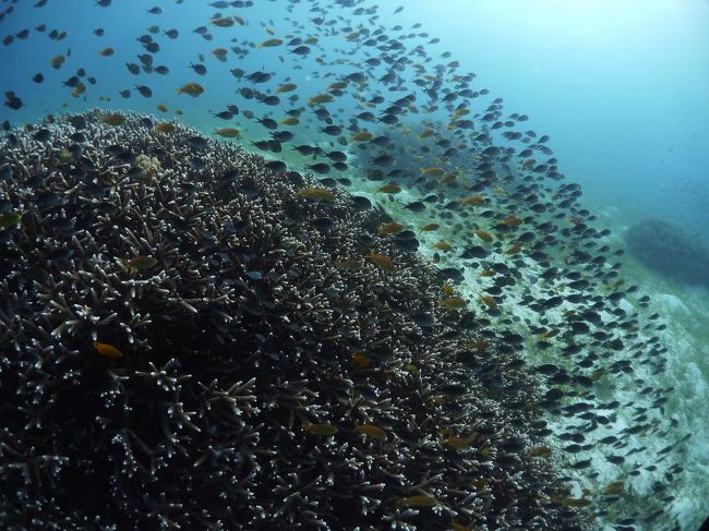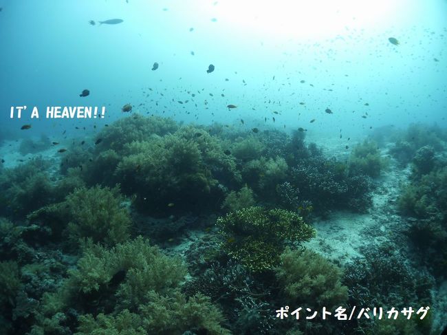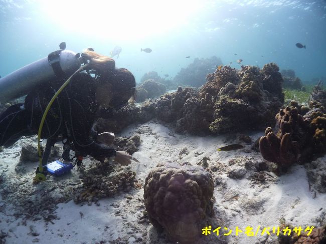 2本目はそこから、かなり移動してバリカサグで2ダイブ。この移動が3時間以上かかりかなり、長かった。ボートは風よけもなくびゅんびゅんと風が吹き抜け寒い。何か、ジャンパーがあった方がいいです。珊瑚、魚影が濃く、かなりきれいでした。台風が通ったなんて嘘のように穏やかで優しい海でした。