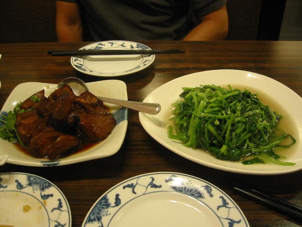 「豚バラ煮(小198元)」、「空心菜炒(180元)」