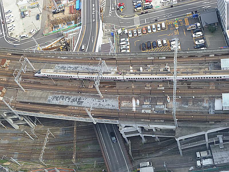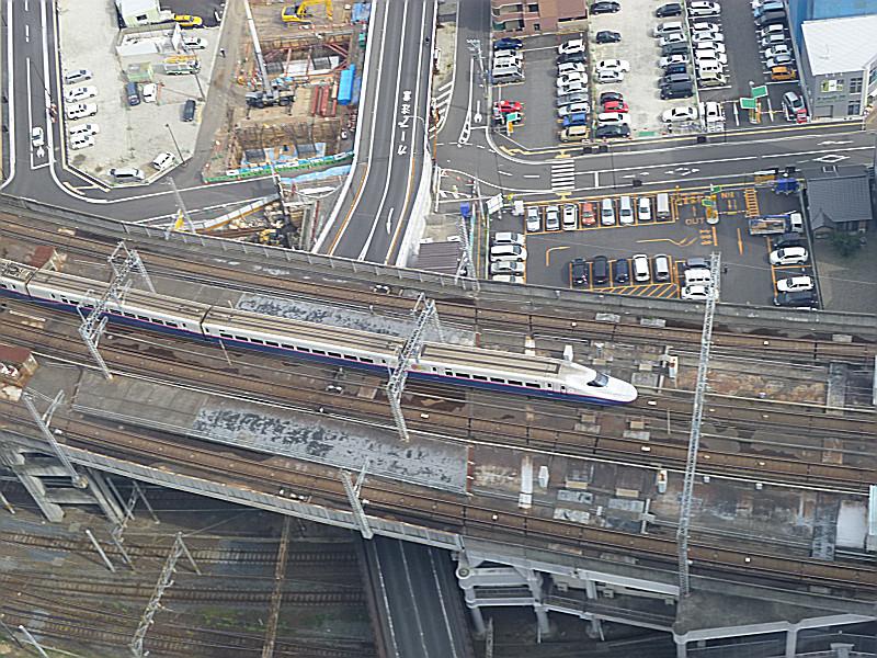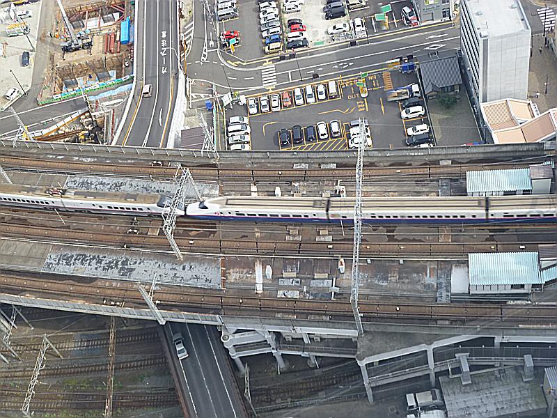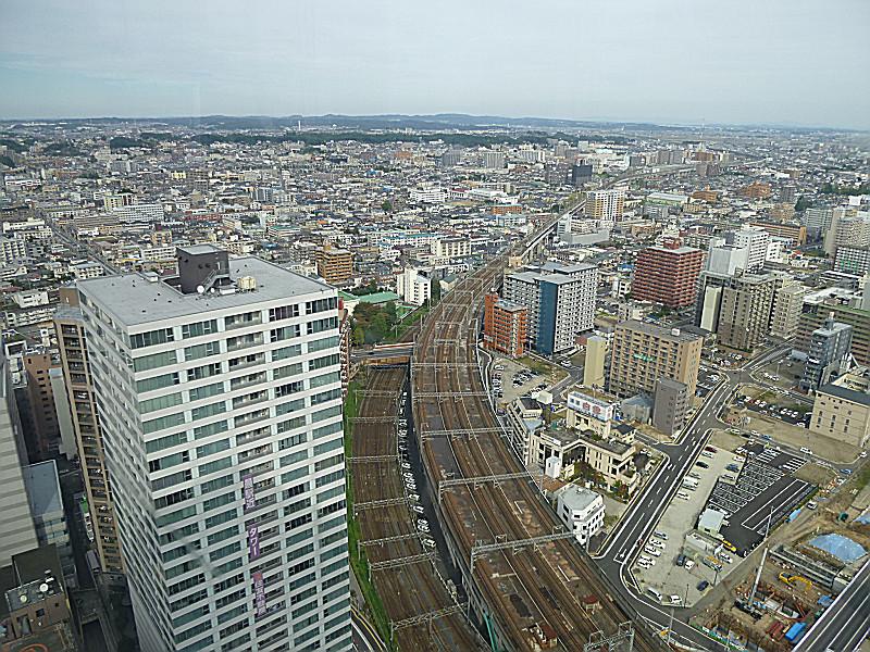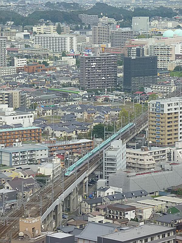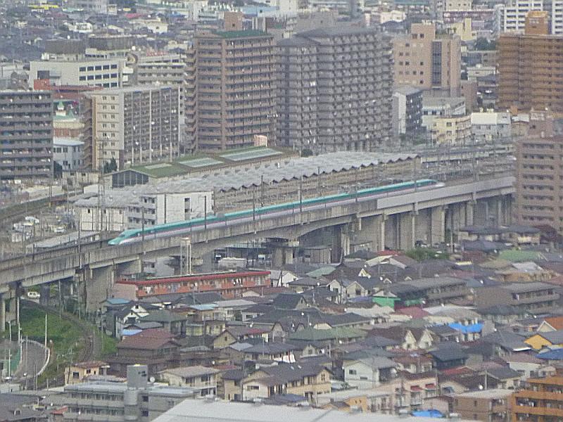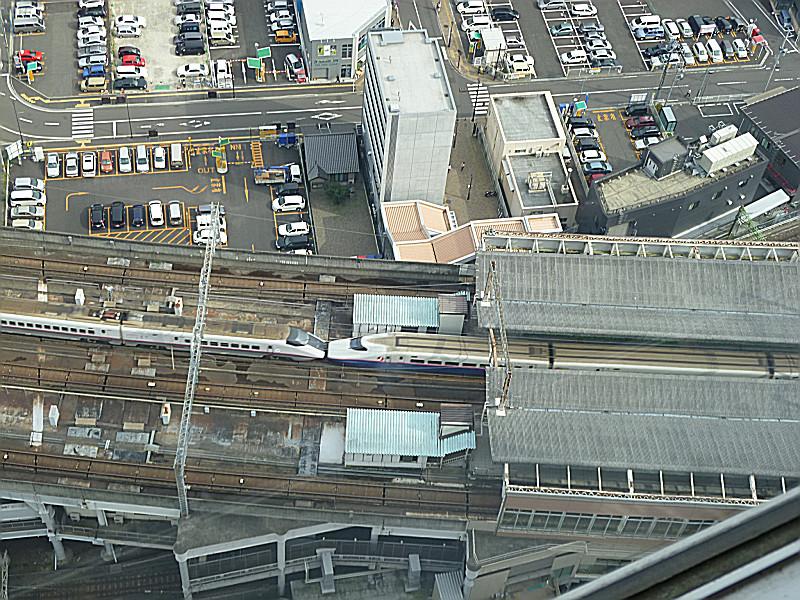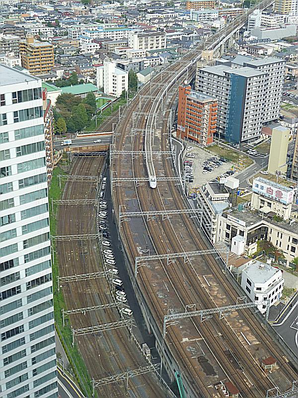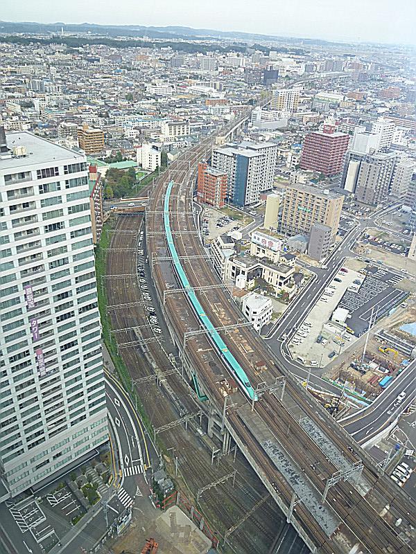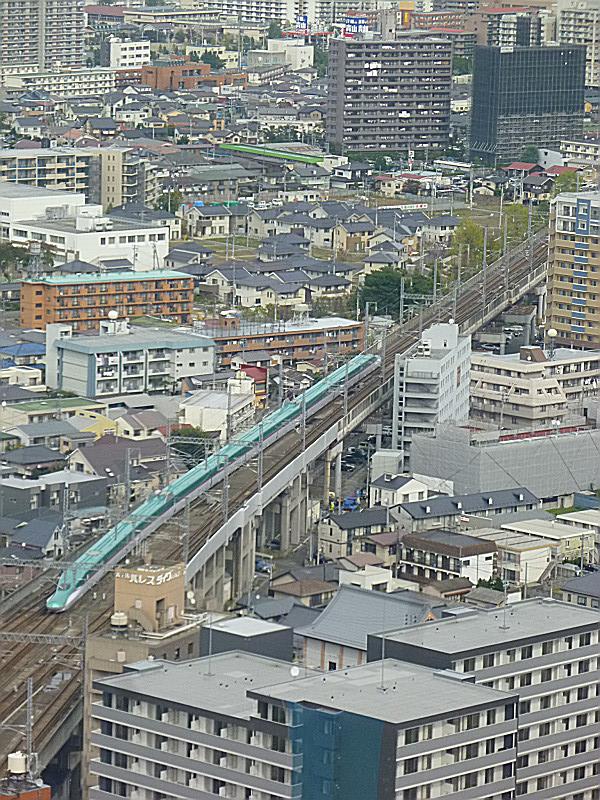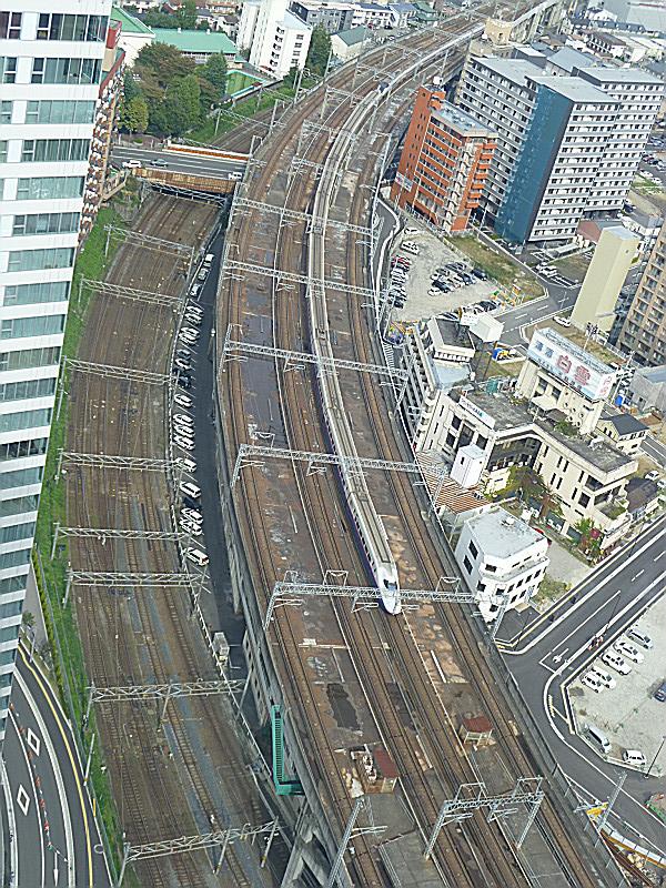 新幹線JR仙台駅(右側、屋根の有る建物)に入線して行きます。 -