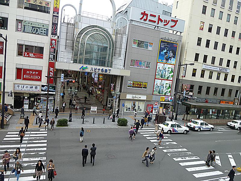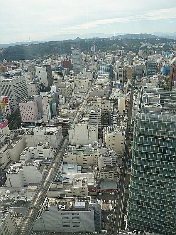 左側に一直線に延びているのはアーケード街の屋根なのです