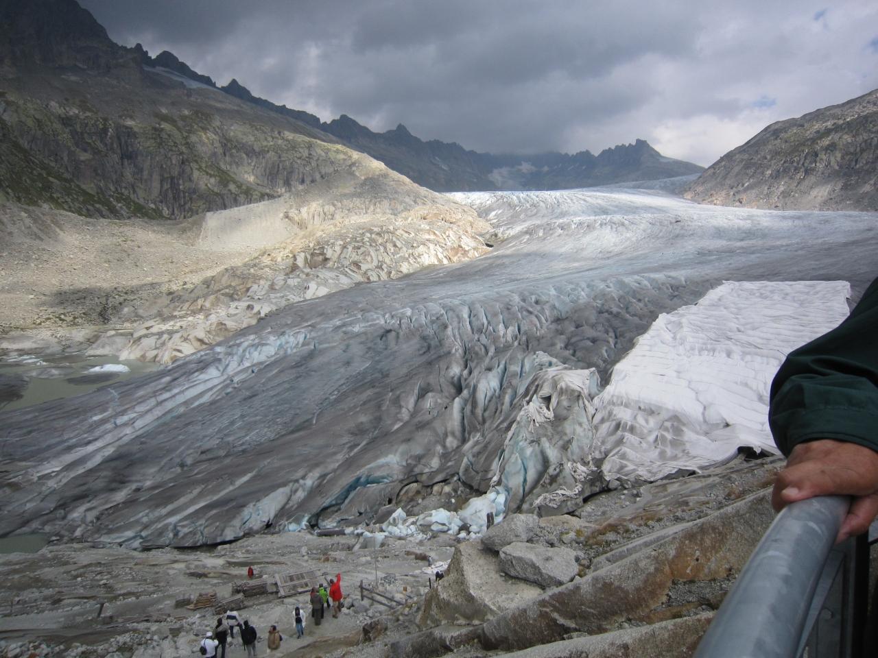 ローヌ氷河。この氷河の雪解け水からローヌ川が生まれるのです。自然のすごさを感じました。右端の白い部分は氷河を保護?するためのカバーのようなもの。あの下に人が通れる通路があります。