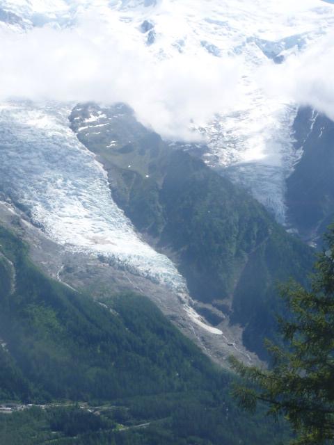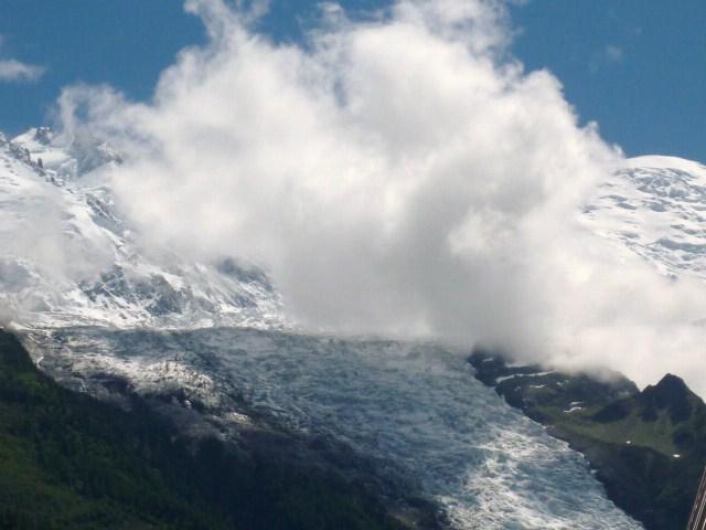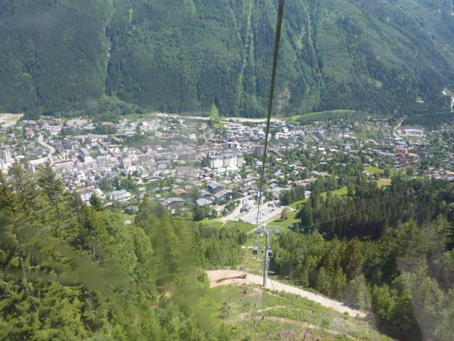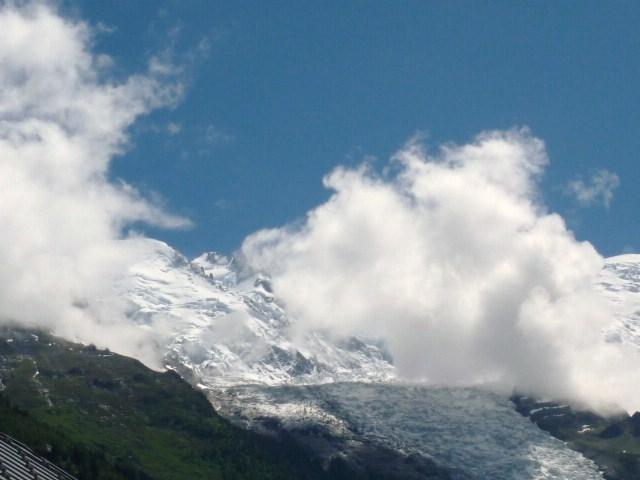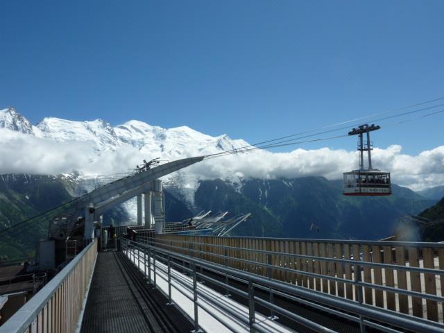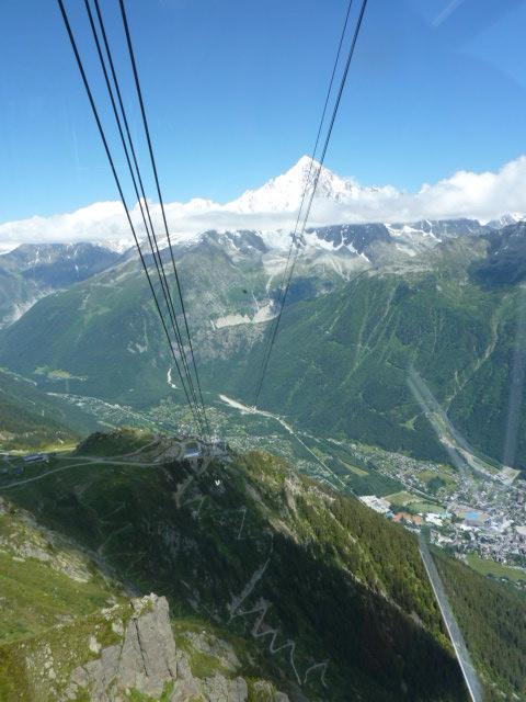 ロープウェーはドンドン高度を上げて、最初はシャモニーの街並み、間もなくその背景にある山々、そして一番大きいモンブランの主峰が、圧し掛かるように視野を満たしてくる。