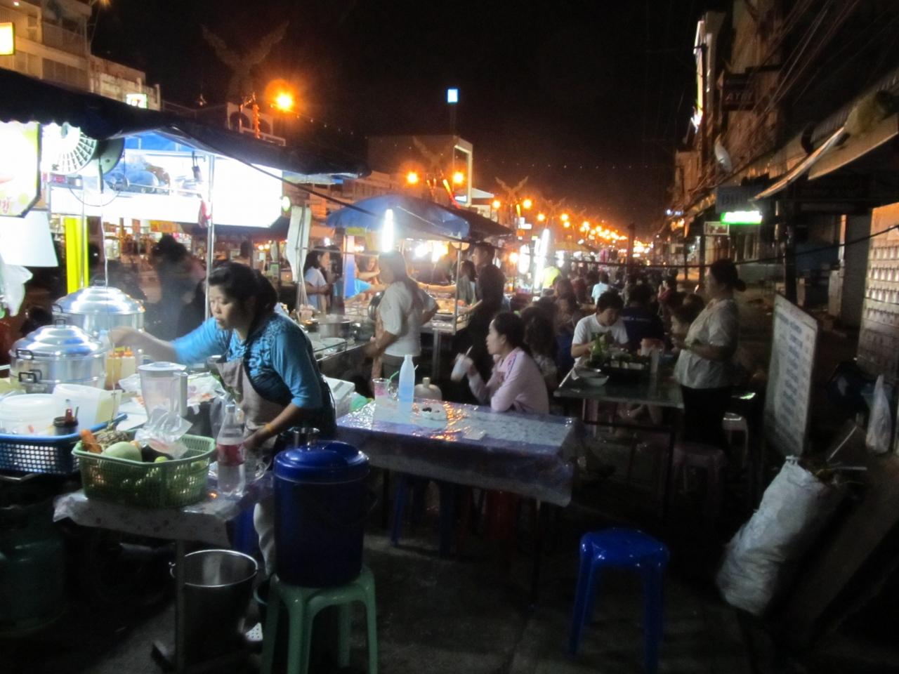 昼までは普通の食堂が屋内で営業しているが、夜は5時前に店をたたみ屋台に譲る。