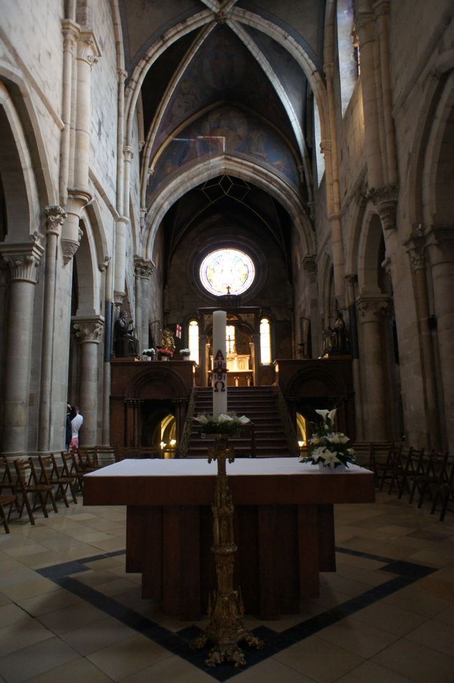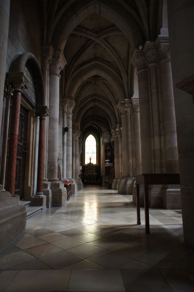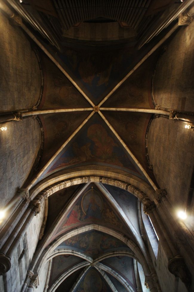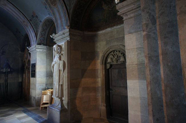 聖堂南壁の回廊側で発見された14世紀の絵画の断片。
