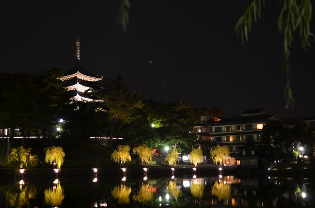 このままホテルに行くのもよいけど、五重塔がライトアップされているとの情報を聞きつけ観にいく事に・・・