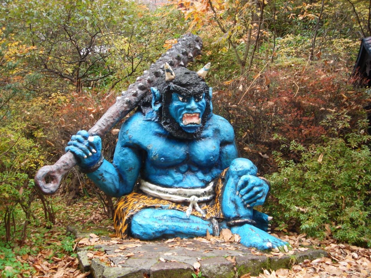 ホテルの前に赤鬼と青鬼。地獄谷だからかなぁ。