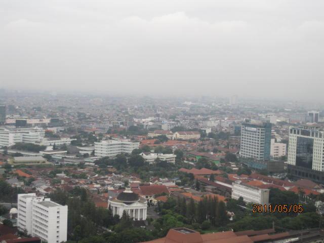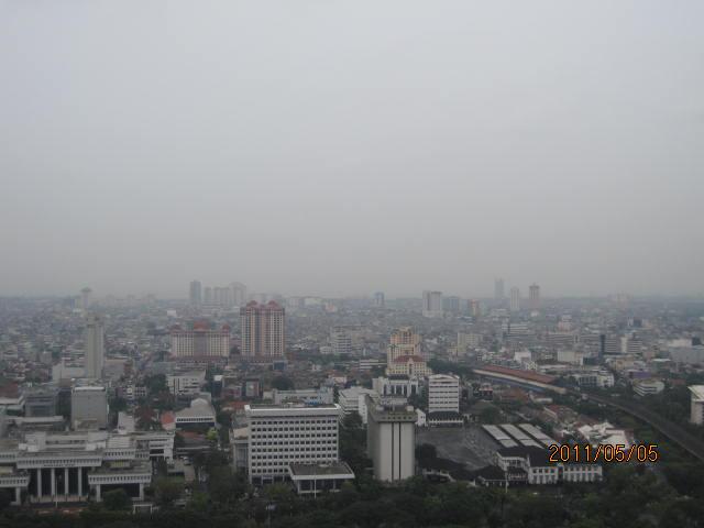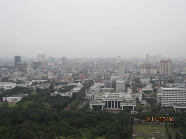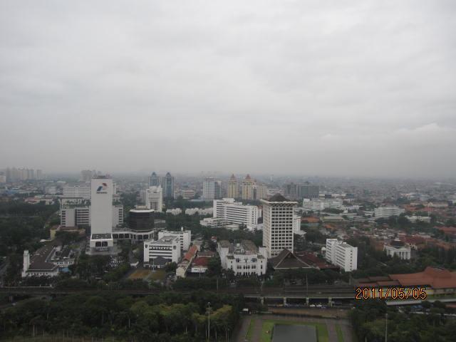 折からの曇り空。パッとした視界は開けないが、街の端も見えない大きなジャカルタの広がりを見ることが出来た。現在のジャカルタの人口は正確には知らないが、人口の多い国の首都、当然1000万人を越えていて、360度、どの方角を見ても巨大さを感じさせるものがあった。