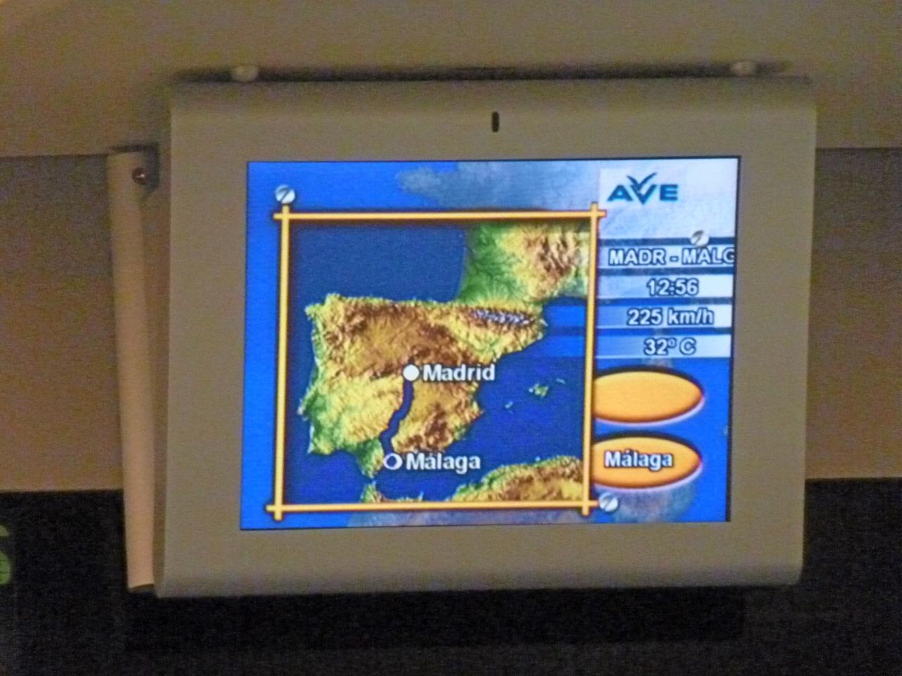 1219発AVE2102Malaga行きの指定券を買おうとしたが,1等しかないと.68.6ユーロと高価だったがやむをえず購入.日本で新幹線でグリーン168kmのったら同じくらいかな.東京から新富士まで148km,グリーン車で8110円だ.スペインの所得水準からいえば高い乗り物と思う.かわりに涼しいラウンジで英気を養うことができた.暑気にあてられていて,食欲もなく,ラウンジでビールとパン,お菓子などで昼食の代わりにした.