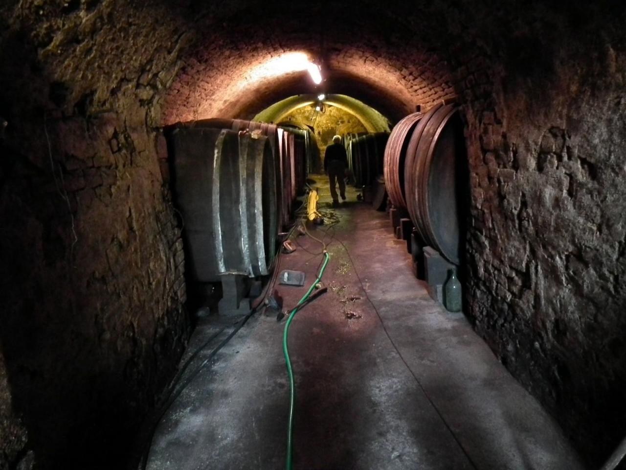 招き入れられたのは、ぶどう酒のタルが並んだ、もう使われていない様子のヴォールトです。とてもかび臭いので、しばらく使われていないのではないでしょうか。水中ポンプが置いてありますから、ひょっとしたら水没していたのかも知れません。