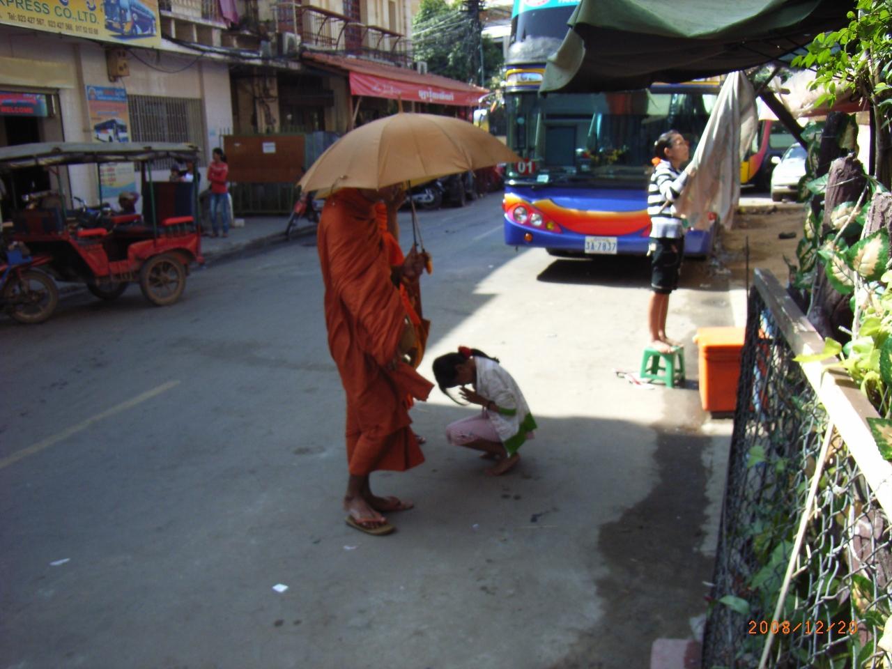 ホテルまで移動中、前方にお坊さんの姿が!