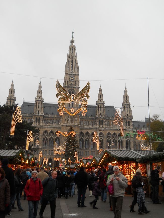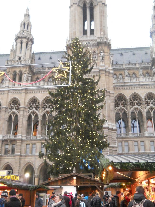 歩いて市庁舎前に、ここのクリスマスマーケットはウイーンでも一番賑やかなんだそうだ。
