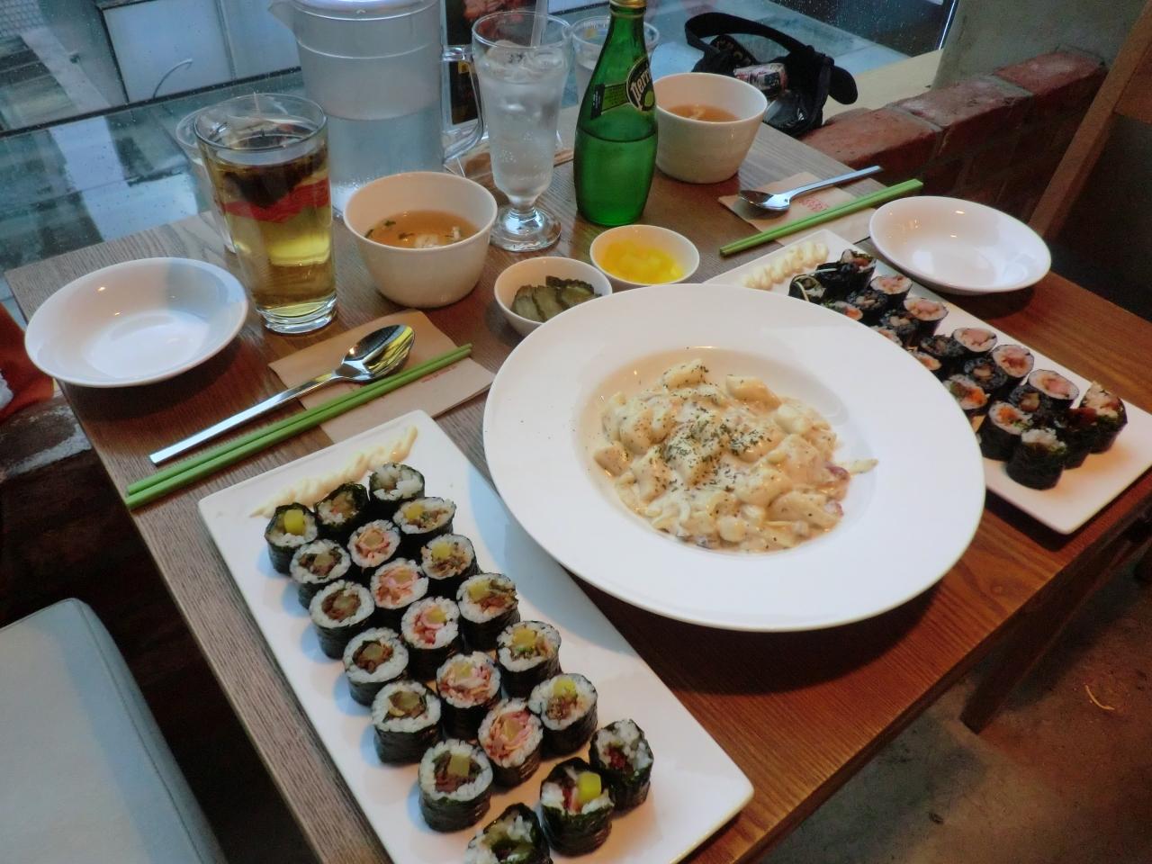 中央に写ってるカルボナーラのトッポギがおいしかった! -