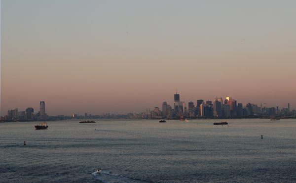 ボストンに向けて~サミットは出港します。その前にはるか彼方のに見えるマンハッタンを眺めて出港風景を撮影します。晴れてます!!