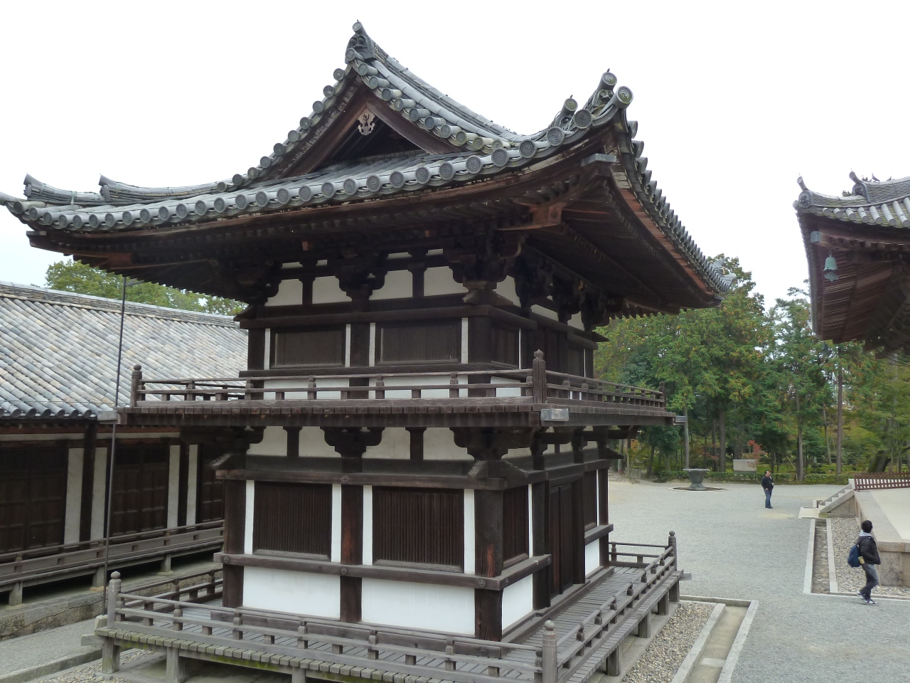 そこは金堂と講堂に挟まれた、西端に鐘楼が望む中庭で、中庭の東端の端正だが魅力的な2階建ての建物・鼓楼が目を惹く。