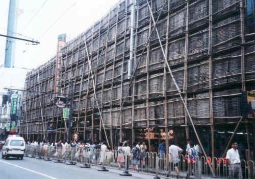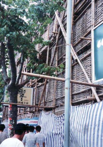 工事現場、全て竹で組み立てます。