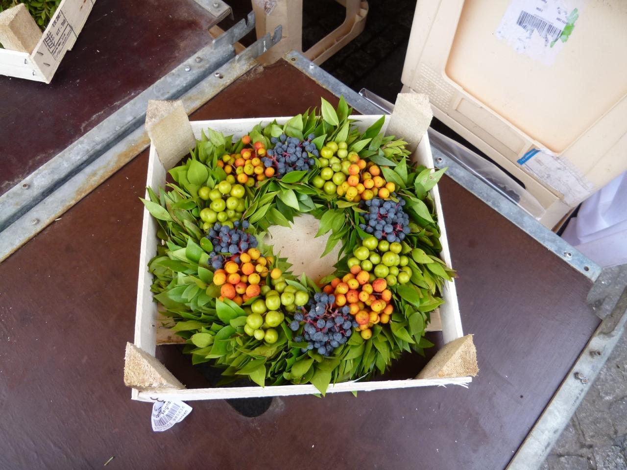 市場は野菜・チーズ・手作り食品・園芸・花といろいろある。
