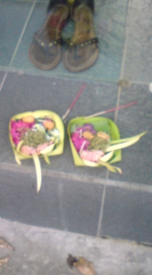 いっぱいの店と人。 チャナンと呼ばれる朝毎日日課の四角く巻いて作っ久葉の葉の上によく解らないものを載せたお供え物がある。それが放置でゴミになっている。