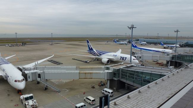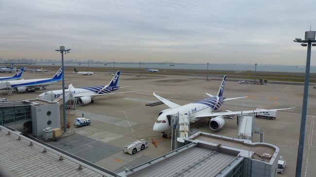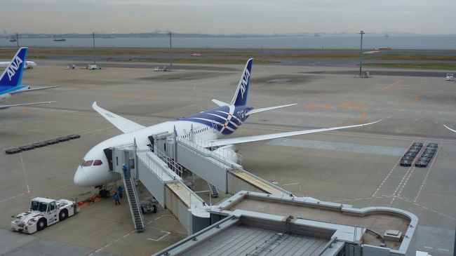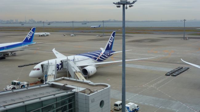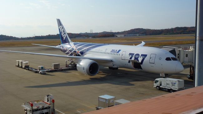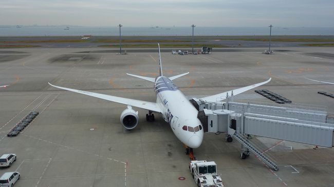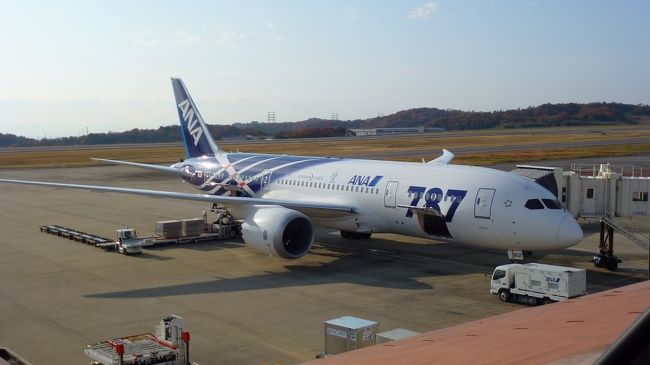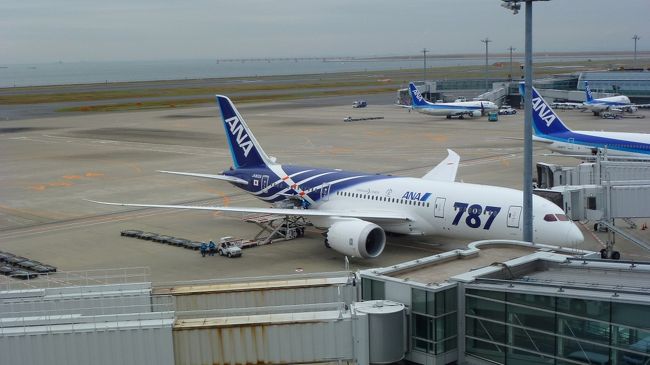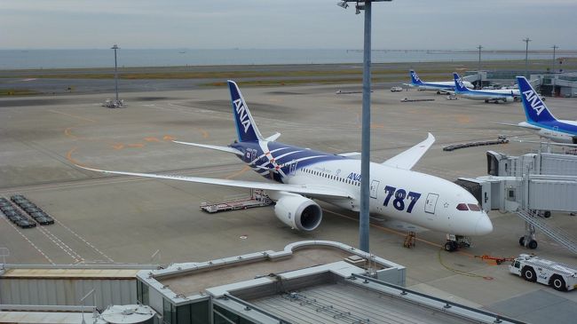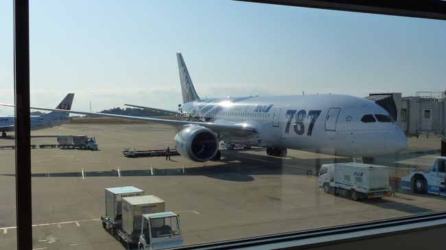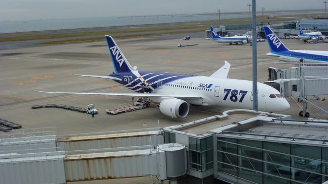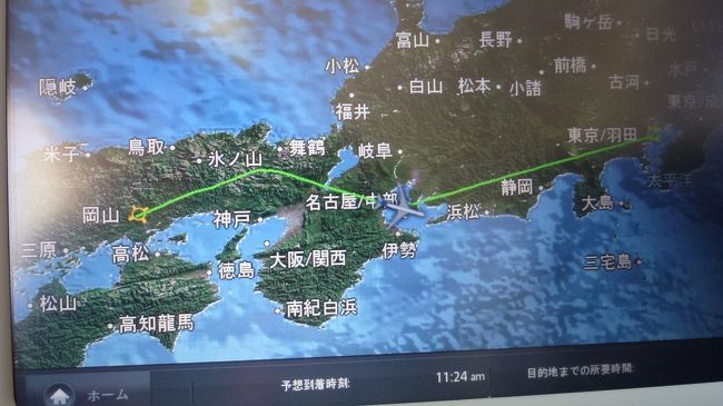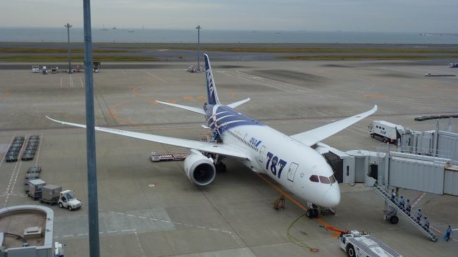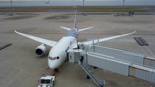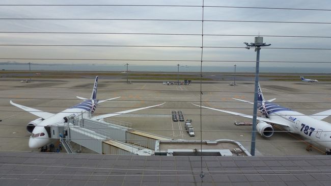初めての岡山空港の様子と、復路のB787-8搭乗の様子と、羽田空港の展望デッキから見た、B787-8です。